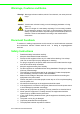 Warnings, Cautions and Notes Warning! Warnings indicate conditions, which if not observed, can cause personal injury! Caution! Cautions are included to help you avoid damaging hardware or losing data. e.g. There is a danger of a new battery exploding if it is incorrectly installed. Do not attempt to recharge, force open, or heat the battery. Replace the battery only with the same or equivalent type recommended by the manufacturer. Discard used batteries according to the manufacturer's instructions.