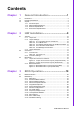 Contents Chapter Chapter 1 General Introduction ...........................1 1.1 1.2 1.3 Introduction ............................................................................................... 2 Product Specifications............................................................................... 2 Chipset ...................................................................................................... 2 1.3.1 Functional Spec. ...................................................................
