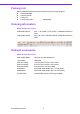 Chapter 1 1.3.3.3 RTC Battery Typical Voltage: 3.0V Normal discharge capacity: 196mAh 1.3.4 Environment Specifications 1.3.4.1 Operating temperature 0 ~ 60° C (32 ~ 140° F) General Introduction 1.3.4.2 Operating Humidity 0% ~ 90% Relative Humidity, non-condensing 1.3.4.3 Storage temperature Standard products (0 ~ 60° C) Storage temperature: -20 ~ 70° C 1.3.4.