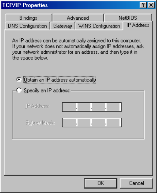 • If you decide to use DHCP, select “Obtain an IP address automatically”, then