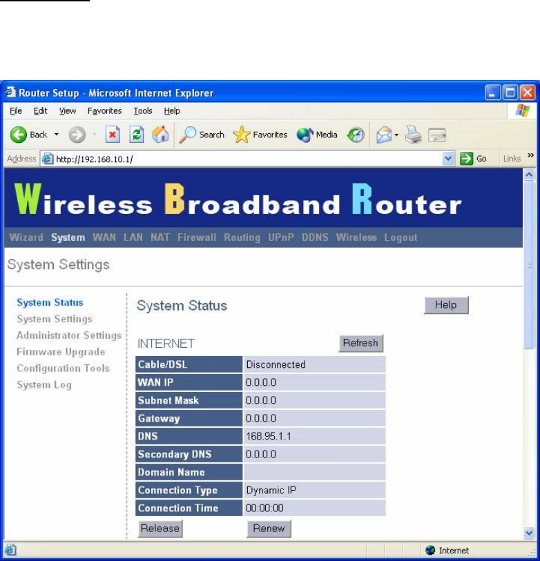 as System Status, System Settings, Administrator Settings, Firmware Upgrade,