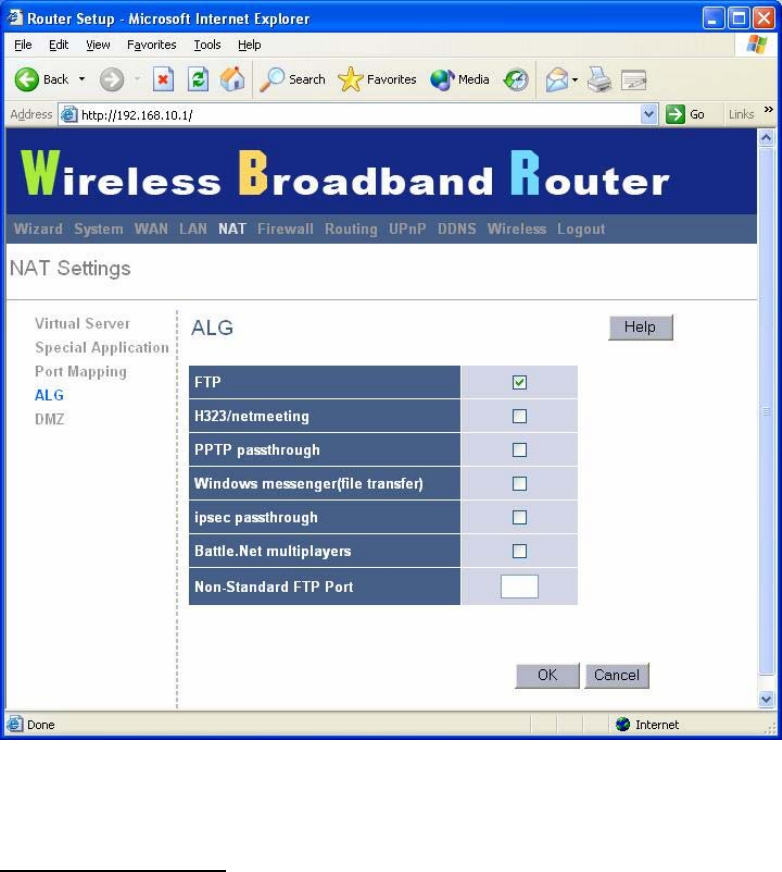 ALG (Application Layer Gateway): You can select to enable, then the router will let that