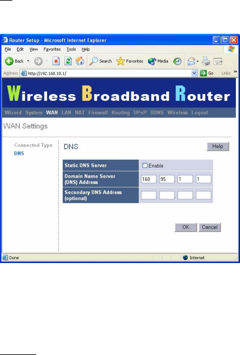 Static DNS Server: You can enable or disable the Static DNS Server.