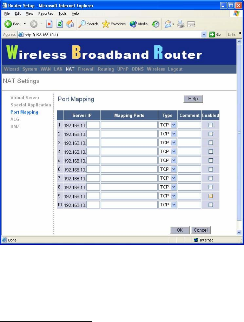 The ALG window allows user to configure ALG settings for the wireless broadband