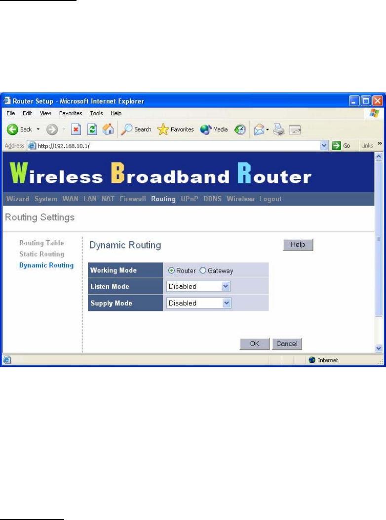 Working Mode: Select whether the wireless broadband router acts like router or gateway.