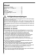 Inhoud Veiligheidsaanwijzingen ............................. Beschrijving van het apparaat ................... Gebruik ..................................................... Onderhoud ................................................ Technische gegevens ............................... Garantiebepalingen en service .................. Installatie ..................................................