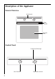Description of the Appliance General Overview Control panel Door handle Full glass door Control Panel Temperature Pilot Light Oven Functions 8 Temperature selector