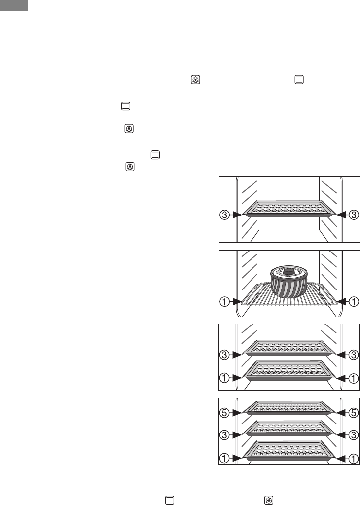 • Backen mit Ober-/Unterhitze ist auf einer Ebene möglich.
