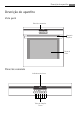 Descrição do aparelho Equipamento do forno Aquecimento superior e elemento de aquecimento do grill Luz do forno Nível de encaixe Tomada do espeto para carne Filtro de gorduras Luz do forno Elemento de aquecimento da parede traseira Ventilador Aquecimento inferior Grelha dos níveis de colocação, retirável Interior da porta No interior da porta do forno está representada a numeração dos níveis de encaixe do forno.