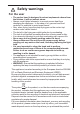 Safety warnings For the user • The cooker hood is designed to extract unpleasant odours from the kitchen, it will not extract steam. • Always cover lighted elements, to prevent excess heat from damaging the appliance. In the case of oil, gas and coal fired cookers it is essential to avoid open flames. • Also, when frying, keep the deep frying pan on the cooker top/ cooker under careful control. • The hot oil in the frying pan might ignite due to overheating.