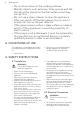 www.aeg.com • • • • • • Do not store items on the cooking surfaces. Metallic objects such as knives, forks, spoons and lids should not be placed on the hob surface since they can get hot. Do not use a steam cleaner to clean the appliance. After use, switch off the hob element by its control and do not rely on the pan detector. If the glass ceramic surface / glass surface is cracked, switch off the appliance to avoid the possibility of electric shock.