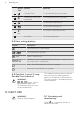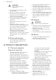 www.aeg.com Problem and a number come on. Possible cause Remedy There is an error in the hob. Disconnect the hob from the electrical supply for some time. Disconnect the fuse from the electrical system of the house. Connect it again. If comes on again, speak to an Authorised Service Centre. comes on. The electrical connection is Speak to a qualified electriincorrect. The supply voltage cian to check the installation. is out of range. comes on.