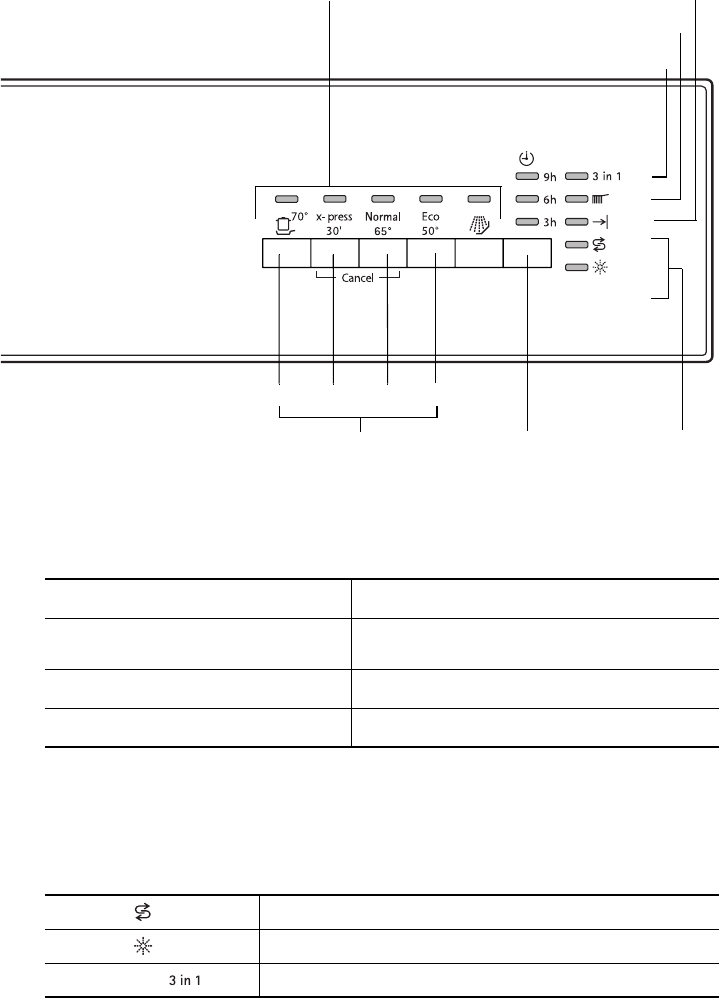 1) Nämä merkkivalot eivät pala pesuohjelman ollessa käynnissä.