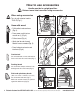 How to use accessories ! ! Handle must be in upright position. Reinsert wand into hose after using accessories. When using accessories Turn air path selector knob to ‘TOOLS’ (Fig. 1). Hose with wand S OL TO FL O OR ATH SELECTO RP R AI • Pull handle to release hose (Fig. 2). • Press power switch to turn vacuum on (I) (Fig. 3). Fig. 1 Fig. 2 • Pull out wand (Fig. 4). • Attach tool to end of wand. Stretch hose as needed (Fig. 5). Fig. 4 • Press button to reinsert wand into hose (Fig. 6). Fig.
