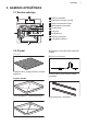 www.aeg.com • • • • • • Nenaudokite garinio valiklio prietaisui valyti. Durelių stiklo nevalykite šiurkščiu abrazyviniu valikliu ar aštriais metaliniais gremžtukais, nes galite subraižyti paviršių ir dėl to stiklas gali sudužti. Jei pažeidžiamas maitinimo laidas, jį leidžiama keisti tik gamintojui, jo įgaliotąjam aptarnavimo centrui arba panašios kvalifikacijos asmenims – kitaip gali kilti pavojus. Prieš pirolizinį valymą reikia išvalyti išsiliejimus. Išimkite visas dalis iš orkaitės.