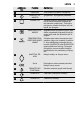 www.aeg.com 5.2 Rodinys A B A) Orkaitės funkcijos simbolis B) Temperatūros / paros laiko ekrano C rodmuo C) Laikrodžio / likusio karščio rodmuo (taip pat laikmatis ir paros laikas) G F E D D) Likusio karščio indikatorius E) Laikrodžio funkcijų indikatoriai (žr. lentelę „Laikrodžio funkcijos“) F) Įkaitinimo indikatorius G) Orkaitės funkcijos / programos skai‐ čius 5.3 Kiti ekrane rodomi indikatoriai Ženklai / / Pavadinimas Aprašymas Funkcijos Galite pasirinkti orkaitės funkciją.