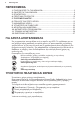 LATVIEŠU 29 SATURS 1. DROŠĪBAS INFORMĀCIJA................................................................................ 29 2. DROŠĪBAS NORĀDĪJUMI.................................................................................. 31 3. UZSTĀDĪŠANA................................................................................................... 33 4. IZSTRĀDĀJUMA APRAKSTS............................................................................ 35 5. ĪSA PAMĀCĪBA........................................