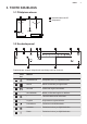 LATVIEŠU 27 3. IZSTRĀDĀJUMA APRAKSTS 3.1 Gatavošanas virsmas izkārtojums 1 1 1 1 Indukcijas gatavošanas zona 2 Vadības panelis 1 2 3.2 Gatavošanas zonas panelis 2 1 3 4 11 5 6 7 10 Lai aplūkotu pieejamos iestatījumus, pieskarieties pie atbilstošā simbola. Sim‐ bols Komentāri 1 IESLĒGT / IZ‐ SLĒGT Lai aktivizētu vai deaktivizētu plīts virsmu. 2 Izvēlne Lai atvērtu un atvērtu izvēlni. 3 Zonas izvēle Lai atvērtu izvēlētās zonas slīdni.