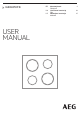 www.aeg.com • • • • • • • BRĪDINĀJUMS! Aizdegšanās risks: Neturiet priekšmetus uz plīts virsmām. Nenovietojiet uz plīts virsmas metāla priekšmetus, piemēram, nažus, dakšas, karotes un vākus, jo tie var sakarst. Netīriet ierīci ar tvaika tīrītāju. Pēc lietošanas izslēdziet plīts virsmas elementu ar tā vadību un nepaļaujieties uz trauka noteicēju. Ja stikla keramikas virsma/stikla virsma ir saplaisājusi, izslēdziet ierīci un atslēdziet to no elektriskās strāvas avota.