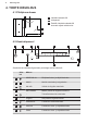 www.aeg.com 4. IZSTRĀDĀJUMA APRAKSTS 4.1 Gatavošanas virsmas izkārtojums 3 1 1 Indukcijas gatavošanas zona 2 Vadības panelis 3 Elastīga indukcijas vārīšanas zona sastāv no četrām sekcijām 1 2 4.2 Gatavošanas zonas panelis 2 1 3 4 5 11 6 7 10 Lai aplūkotu pieejamos iestatījumus, pieskarieties pie atbilstošā simbola. Sim‐ bols Komentāri 1 IESLĒGT / IZ‐ SLĒGT Lai aktivizētu vai deaktivizētu plīts virsmu. 2 Izvēlne Lai atvērtu un atvērtu izvēlni.