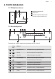 EESTI 7 3. TOOTE KIRJELDUS 3.1 Pliidipinna skeem 3 1 1 Induktsioonkeeduväli 2 Juhtpaneel 3 Paindlik induktsioonkeeduväli koosneb neljast sektsioonist 1 2 3.2 Keedualapaneel 2 1 3 4 11 5 6 7 10 Saadaolevate seadete nägemiseks puudutage sobivat sümbolit. Süm‐ bol Märkus 1 SISSE/VÄLJA Pliidiplaadi sisse- ja väljalülitamiseks. 2 Menüü Menüü avamiseks ja sulgemiseks. 3 Ala valik Valitud ala liugriba avamiseks. Ala indikaator Näitab, millise ala liugriba on aktiivne.