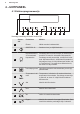 www.aeg.com 4. JUHTPANEEL 4.1 Elektronprogrammeerija 1 2 3 4 5 6 7 8 9 10 11 Kasutage seadmega töötades sensorvälju. Sensor‐ väli 1 2 3 - Funktsioon Märkus Ekraan Näitab seadme hetkeseadeid. SISSE/VÄLJA Seadme sisse- ja väljalülitamiseks. Küpsetusrežiimid või Juhendatud küpsetamine Puudutage üks kord sensorvälja, et valida küpse‐ tusrežiim või menüü: Juhendatud küpsetamine. Puudutage uuesti sensorvälja, et menüüsid vahe‐ tada: Küpsetusrežiimid, Juhendatud küpsetamine.