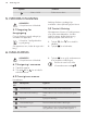 www.aeg.com 4. BETJENINGSPANEL 4.1 Elektronisk programur 1 2 3 4 5 6 7 8 9 10 11 Brug tasterne til at betjene apparatet. Sensorfelt 1 2 - Funktion Kommentar Display Viser apparatets aktuelle indstillinger. TÆND/SLUK Tænder/slukker for apparatet. Ovnfunktioner eller Automatisk tilberedning Berør sensorfeltet én gang for at vælge en ovnfunktion eller menuen: Automatisk tilberedning. Berør sensorfeltet igen for at skifte mellem menuerne: Ovnfunktioner, Automatisk tilberedning.