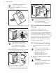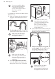 www.aeg.com Max ▼ ax ▼ ax ▼ M Sa lt M 44 2 1 16.7 Cleaning the drain pump WARNING! Disconnect the mains plug from the mains socket. 2. Place a suitable bowl below the drain pump access to collect the water that flows out. 3. Squeeze the left lever and pull the drainage duct forward to open it. Regularly check the drain pump filter and make sure that it is clean. Clean the drain pump if: • The appliance does not drain the water. • The drum does not turn.