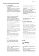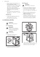 www.aeg.com • Make sure that all metal objects are removed from the laundry. • Do not wash fabrics which are heavily soiled with oil, grease or other greasy substances. It can damage rubber parts of the washing machine. Prewash such fabrics by hand before loading them into the washing machine. • Do not touch the glass door while a programme is in operation. The glass can get hot. 2.5 Service • To repair the appliance contact an Authorised Service Centre. • Use original spare parts only. 2.