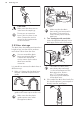 www.aeg.com 16.8 Cleaning the inlet hose and the valve filter It is recommended to clean both the filters of the inlet hose and valve occasionally to remove any deposit, collected over the time: 1. Remove the inlet hose from the tap and clean the filter. 1 11. Put the filter back into the special guides by turning it clockwise. Make sure that you tighten the filter correctly to prevent leakages. 2 2 3 2. Remove the inlet hose from the appliance by loosening the ring nut. 1 12.