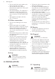 www.aeg.com Disconnect the appliance and close the water tap. Contact the Authorised Service Centre. • Cleaning cycle recommended - Run the Machine Clean programme as described in ‘Programmes’ chapter. If the cleaning programme is postponed, the message keeps on popping up during next uses until it is run. • Programme will continue when electricity supply is stable - The mains supply is unstable. Wait until the mains supply is stable. • A water leak has been detected The anti-flood device is on.