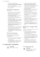 www.aeg.com The absence of frost is due to the continuous circulation of cold air inside the compartment, driven by an automatically controlled fan. 7.7 Periods of non-operation WARNING! If the cabinet will be kept on, ask somebody to check it once in a while to prevent the food inside from spoiling in case of a power failure. When the appliance is not in use for long periods, take the following precautions: 1. Disconnect the appliance from electricity supply. 2. Remove all food. 3.