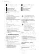 www.aeg.com 4 Fridge temperature indicator 5 Fridge temperature regulator / button 6 DYNAMICAIR indicator 7 DYNAMICAIR button 8 Appliance Pilot light 9 Appliance ON/OFF switch 10 Freezer temperature regulator / + button 3.2 Switching on 1. Insert the plug into the wall socket. 2. Press the ON/OFF switch. The Pilot light will light up. The alarm indicator light flashes since the temperature is reached. The acoustic alarm sounds. 3. Press the alarm reset to reset the alarm. 3.