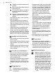 www.aeg.com Проблема Можлива причина Спосіб усунення Компресор не вми‐ Це цілком нормально і Компресор вмикається кається одразу після не свідчить про несправ‐ через деякий час. натиснення переми‐ ність. кача COOLMATIC чи після зміни темпера‐ тури. По задній стінці хо‐ Під час автоматичного лодильника тече во‐ розморожування на за‐ да. дній стінці тане іній. Це нормальне явище. Вода затікає всере‐ дину холодильника. Закупорився отвір для зливу води. Прочистіть отвір для зли‐ ву води.