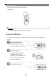 Attaching the Strap Attach the strap to your camera as shown in the image. Caution y Do not swing the camera around by the strap Inserting the Batteries The camera is powered by two AAA-size alkaline batteries or rechargeable NiMH batteries. 1 Open the battery cover. Slide the battery cover in the direction indicated by the arrows. 2 Insert the batteries. Insert two AAA-size batteries with the positive (+) and negative (-) poles matching the directions indicated inside the battery compartment.