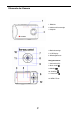 Elemente der Kamera 1. Blitzlicht 2. Selbstauslöseranzeige 3. Objektiv 4. Betriebsanzeige 5. LCD-Display 6. Wiedergabetaste Navigationstaste 7. Senkrecht (OK) 8. Nach rechts 9. Abwärts 10. Aufwärts 11. Nach links 12.