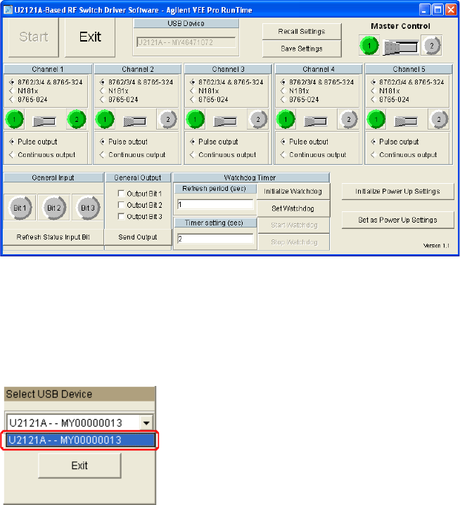 9 The U2121A-Based RF Switch Driver Software screen will appear.