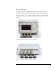 Chapter 3: Testing Performance To set up the test equipment and the logic analyzer b Configure the oscilloscope according to the following table. Oscilloscope Setup Acquisition Display Trigger [Shift] ∆ Time Averaging: On # of averages: 16 Graticule graphs: 2 Level: 0.0 V Stop src: channel 2 [Enter] Channel 1 Channel 2 Define meas External Scale Attenuation: 20.00:1 Scale: 200 mV/div Offset: - 1.300 V External Scale Attenuation: 20.00:1 Scale: 200 mV/div Offset: - 1.