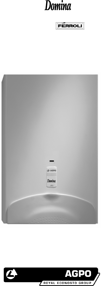 1. ALGEMEEN Introductie De AGPO Domina is een moderne verbeterdrendement combitoestel, dat zowel warm tapwater kan leveren als warmte voor de cv-installatie. Het toestel is voorzien van de meest moderne technieken, die ervoor zorgen dat zowel het gasverbruik als het elektriciteitsverbruik onder alle omstandigheden zo laag mogelijk blijven. Tevens zorgen de nieuwe technieken ervoor dat er een minimum aan onderhoud behoeft te worden uitgevoerd en dat de levensduur van het toestel wordt verlengd.