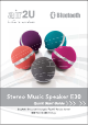 Music Speaker Specification Item Description Power Output 2 x 2.5 W Frequency 80 Hz - 18 KHz S/N ratio Distortion Connectivity Pairing Name air2U E30 Working Distance Up to 10 m Wireless Technology Bluetooth v2.1+EDR Interface 3.5 mm Audio in Power Battery Capacity 900 mAh + 900 mAh Charging Port Micro USB Music Playback Time 10 hours Charging Time 3.5 hours www.air2U.