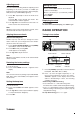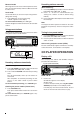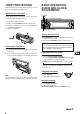 THEFT PROTECTION Take the front panel with you when leaving the car, and keep it in the supplied carrying case. BASIC OPERATION, AUDIO AND CLOCK ADJUSTMENT Detaching the front panel Before detaching the front panel, remove the CD to prevent possible damage to the unit. PWR/ATT SEL Jog dial (PUSH-SOURCE) 1 Press z to remove the CD. 2 Press and hold PWR/ATT until the unit turns off. 3 Press %. (Hold the panel with one hand to prevent accidentally dropping it.) 4 Remove the panel.