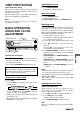 1 Connect a cassette/MD/MP3 portable player or other Notes • When you play a CD that is already inserted, CD play starts at the point where it stopped the previous time. A newly inserted CD starts from the first track. • A CD-R or CD-RW may take some time to start playing back, but this is not a malfunction. • If a CD-R or CD-RW with no data or incompatible data is inserted, “ERROR03” will appear on the display. (See the section “TROUBLESHOOTING”.) The unit cannot play such discs.