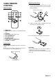 CARD REMOTE CONTROL Names of parts Replacing the battery 1 Insert the tip of a pointed object A into the hole B and pull out the battery holder to remove the lithium battery (CR2025). Remote control (back) BAND TAPE CD CD-CH SKIP REW FF TUNING / DISC UP DOWN Battery holder VOLUME 2 Install a new lithium battery (CR2025) with the ) side facing up in the battery holder. 1 BAND button 2 TAPE button (This button is not available with this unit.