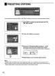 ~ PRESETTING STATIONS Up to 6 stations for each band [FM1, FM2, FM3, and AM] can be stored on the preset station buttons. 1 Press BAND to select the desired band from FM1, FM2, FM3, and AM. z Tune in the station to be preset. a Press one of the preset station buttons (1 - 6) for more than 2 seconds until a beep tone is heard. The number of the pressed preset station button is displayed. m [ w J 4 Repeat steps 2 and 3 to preset other stations.