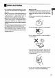 ❑ PRECAUTIONS Ne pas essayer de demonter cet appareil. Les rayons laser de la t6te de lecture optique sent dangereux pour Ies yeux. ● Veiller a ce qu’aucune epingle ou autre objet exterieurne penetre clans I’appareil; cela pourrait dormer lieu a un mauvais fonctionnement, ou un risque, tel que decharge electrique ou exposition aux rayons laser. ● Quand Iavoiture est garee en plein soleil en ete, I’augmentation de temperature a I’interieur peut @treconsiderable.
