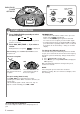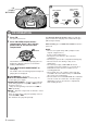 B CD, POWER 6STANDBY PLAY/PAUSE/ SKIP/SEARCH + - PRESET TUNE STOP/ MEMORY REPEAT SLEEP FM MODE /OSC B 1 CD OPERATION Press CD. The power is turned on. 2 Press CD OPEN to open the disc compartment. Place a disc with the printed side up and close the disc compartment. To start play when the power is off, press CD. The power is turned on and play of the loaded disc begins (Direct Play Function). After listening, press POWER 6STANDBY to turn the power off.