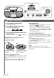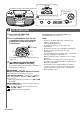 A VOLUME FUNCTION (CD, RADIO, TAPE/6STANDBY) PAUSE STOP/EJECT F FWD REW PLAY REC T-BASS e s A TAPE OPERATION Use Type I (normal) tapes only. INSERTING A TAPE Press Z STOP/EJECT to open the cassette holder and insert a tape with the exposed side up and the side to be played facing out. RECORDING Note that recording is done on only one side of the tape. 1 Insert a tape with the side to be recorded facing out. 2 Get ready to record from the source.