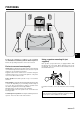 OPERATING SUB WOOFER AUTO POWER VOLUME POWER TURN OVER POWER: Turns the power on and off. VOLUME: Adjusts the volume of the sub woofer. - The volume level should be balanced with that of all other channels. - If the sound is distorted, turn VOLUME down on the sub woofer or lower the sub woofer level on the receiver. - To avoid overloading the sub woofer, do not set the volume of the receiver so high that the sound becomes distorted. NOTE After using, press POWER to turn off the power.