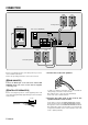 CONNECTION Right Left Front speakers B Sub woofer A/V receiver (AV-NW30) A ANTENNA COAXIAL (VIDEO 2) AM LOOP FM 75Ω (COAXIAL) OPTICAL (VIDEO 1) OPTICAL (DVD) DIGITAL IN PCM /DOLBY DIGITAL /DTS DVD VIDEO 2 /LD/TV IN IN IN OUT B SUB WOOFER VIDEO 1/MD MONITOR SURROUND CENTER SPEAKERS SPEAKER R L OUT VIDEO OUT A VIDEO FRONT SPEAKERS R L 0 0 0 9 9 9 0 L AUDIO R IN DVD IN VIDEO 2 /LD/TV Right Surround speakers Before connecting the speakers, turn off the power of your stereo r