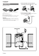 PREPARATIONS 1 Connect the speaker cords to the main unit. CONNECTIONS The cords with the white stripes should be connected to the terminals and the other cords to the terminals. Check your accessories Remote control AM loop antenna FM antenna 2 Connect the supplied antennas. Connect the FM antenna to the FM 75 Ω terminals and the AM loop antenna to the AM LOOP terminals. Operating Instructions, etc.